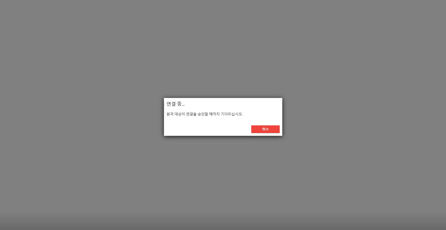 원격 주소를 입력하고 “Enter” 또는 “연결” 버튼을 클릭하면 아래의 화면과 같이 안내창이 출력됩니다. 안내창의 내용은 원격을 받는 대상이 “승인”을 해야지만 접근이 가능하다는 뜻인데요. 이렇게 뜨는 이유는 원격받는 대상의 비밀번호 설정이 되어 있지 않아 원격 대상이 승인을 해야지만 원격이 가능하다는 안내창이 뜬 겁니다.